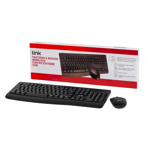 LINK KIT TASTIERA ITALIANA E MOUSE WIRELESS NERO - LKTAST03