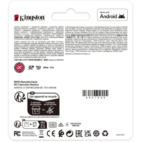 La scheda microSD Canvas Select Plus di Kingston è compatibile con i dispositivi Android ed è stata progetta per assicurare prestazioni con l'evoluta classificazione A1. La scheda offre velocità affidabili ed ampie capacità, che consentono di caricare più rapidamente le app e catturare immagini e video da conservare in spazi di archiviazione fino a 1TB2. Oltre ad avere prestazioni, velocità e resistenza straordinarie, la scheda microSD Canvas Select Plus è stata progettata per assicurare la massima affidabilità, così da poterla portare ovunque, avendo sempre la garanzia che file, video e foto sono protetti e al sicuro. Disponibile con garanzia a vita.Caratteristiche Canvas Select Plus - SDCS3/128GB: